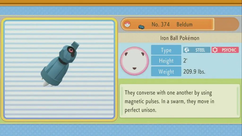 Beldum is a Steel & Psychic-type Pokemon that you will find in the Grand Underground in Pokemon Brilliant Diamond & Shining Pearl (BDSP). You will encounter Beldum only after you have unlocked the National Pokedex. This guide shows how to Unlock the National Pokedex and the underground hideaway/ Biome where you will find Togepi.