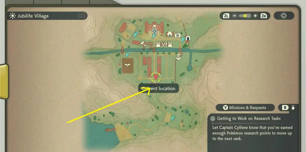 To start the quest, talk to the NPC named Dorian, who is standing at the entrance gate of Jubilife Village as shown in the picture below. He will ask you to catch a Big Buizel.