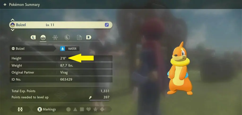 Big Buizel has a height equal to or greater than 2’8″. You can check a Pokemon’s height in the Pokemon Summary Screen in the Pastures.