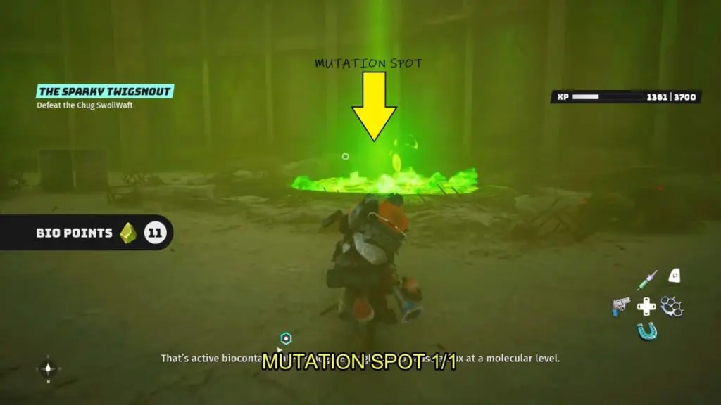 • Mutation Spot: You’ll come up against a big monster name ‘Mega Mork’. defeat him and interact with one of the circular boiling liquid spots of the ground.
