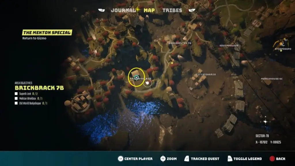 Each Location has different objectives that you can complete to earn rewards and complete the area. The following objectives become available when you reach Brickbrack 7B: