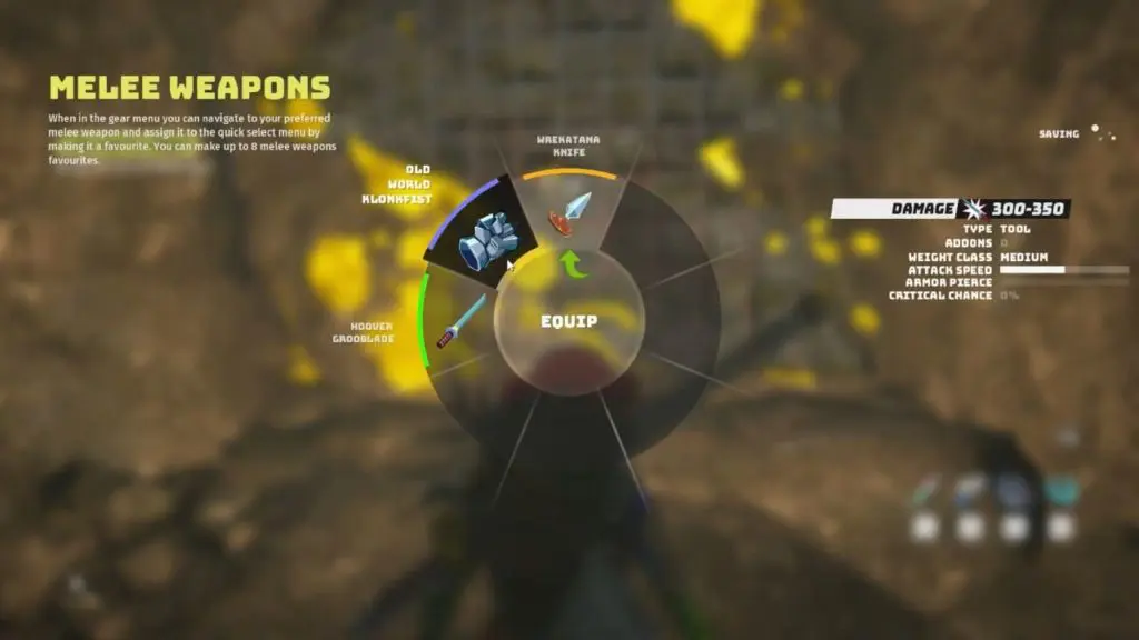 - Open the Melee weapon wheel and select the ‘Old World Konkfist’ to equip it.