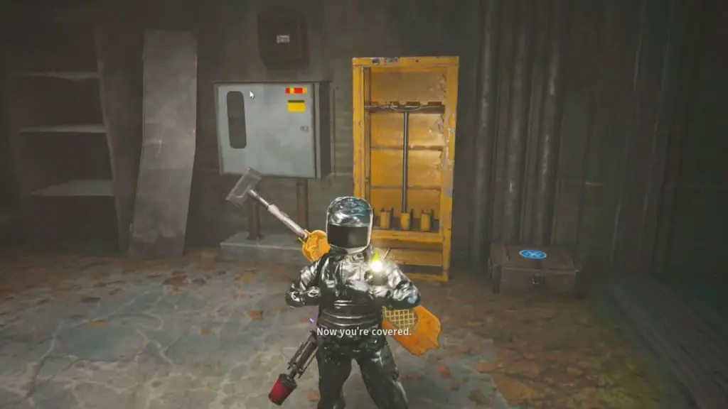 The next step is to set the dish in such a way that it lines up with the signals. Simply move it until it vibrates, and hit the Interact button. The location of the corresponding suit will be marked on the map. Location is at Bangshelter 6L.