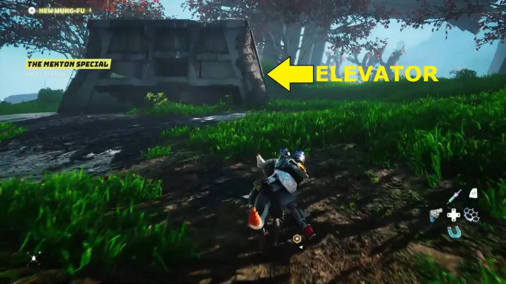 - Look around “Plank-Place” for a ruined building and head into it to go underground Holesome area with an elevator.