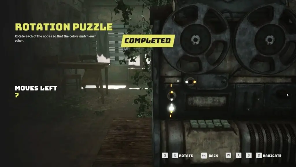 Old World Gadget #2: Projector Puzzle. Solve the puzzle by rotating each of the nodes so that the color match each other. It is located on the second floor of Building #3 marked on the map.