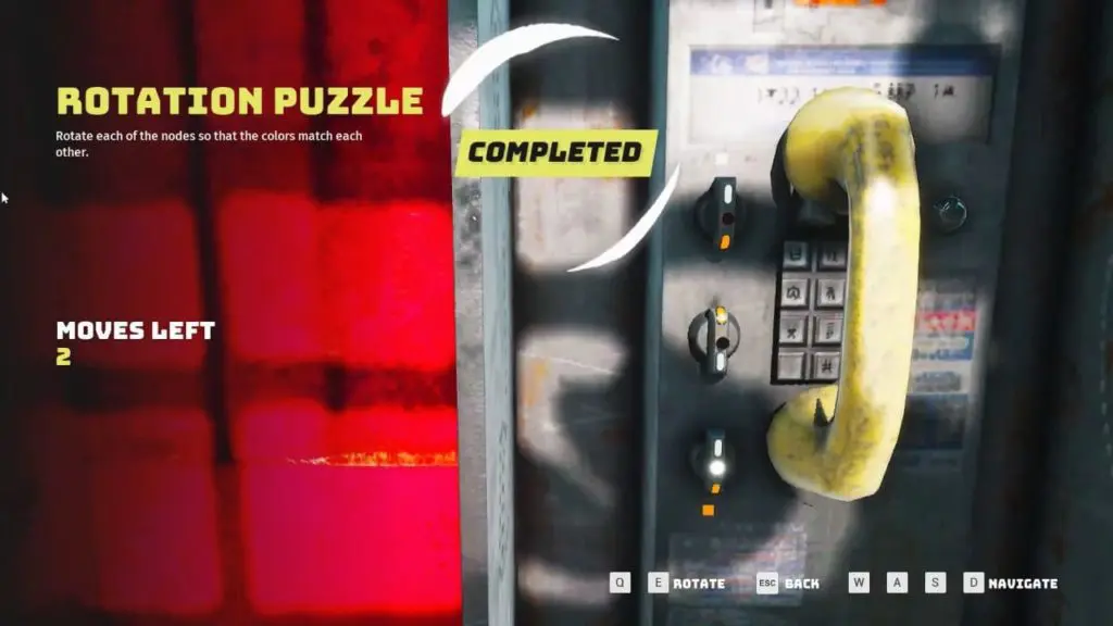 Old World Gadget #1: Telephone Booth Puzzle. Solve the puzzle by rotating each of the nodes so that the color match each other. It is located in front of Building #4 marked on the map.