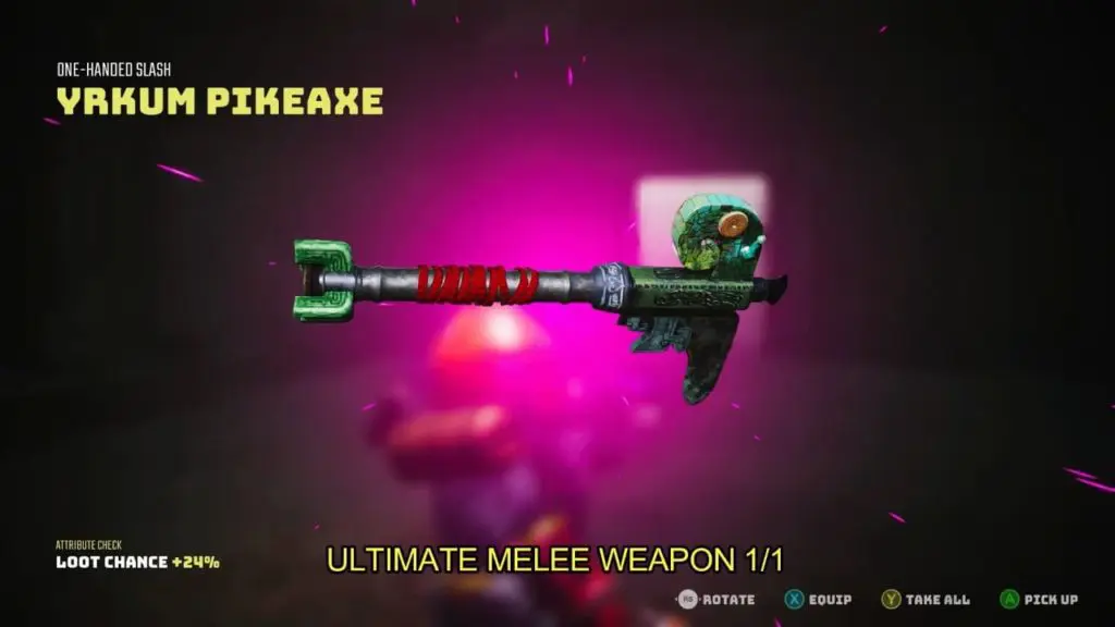 Go to Sludge Deodorizum and fight the Greasy Polliconey boss in the area. You can find him not very far away from big oil storage tanks in the middle area. Once defeated, pick up the Deodorizum vault key that drops and use it at the Deodorizum Vault to find the weapon. This will start a new side quest “Deodorizum Vault”. I have marked the Vault location on the map. It is between two bog oil storage tankers on the northeastern side.