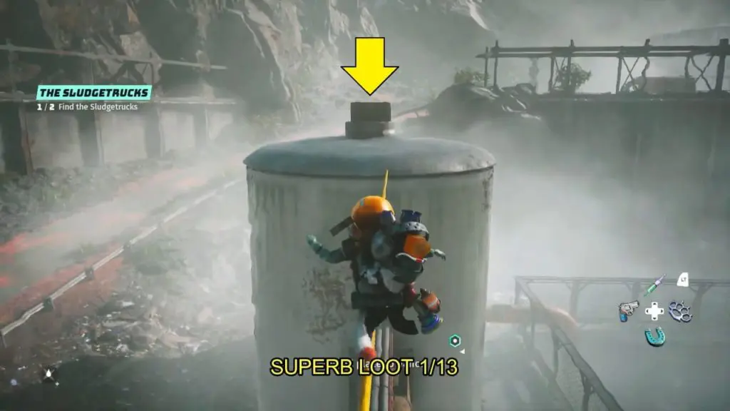 Superb loots #13: It is on the third floor of the blue color building. There is no direct way to reach the third floor. Go to the location where you find the Bioblob container as there is an opening on the roof. Use the fungi ability to reach the third floor. Superb loot is inside a room.