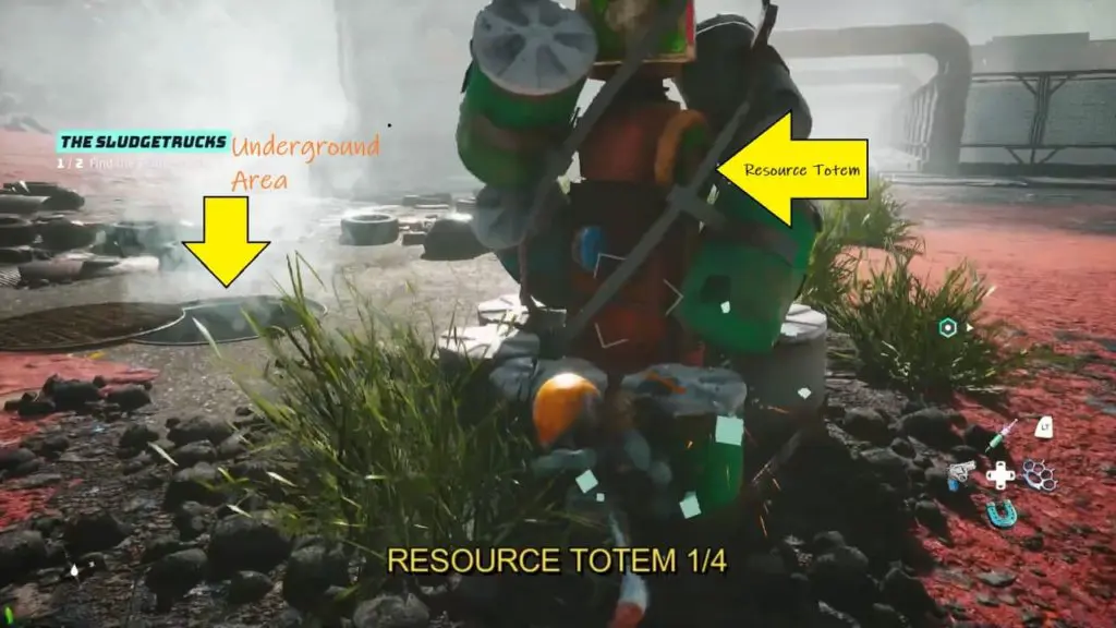 Resource Totem #4: Rubber skrap is located on the northwestern side near the broken flyover
