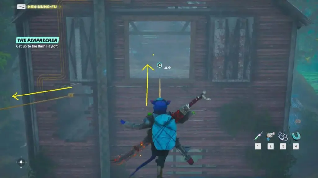• Now use the tightrope to reach other windows of the barn where you will find Hayloft.