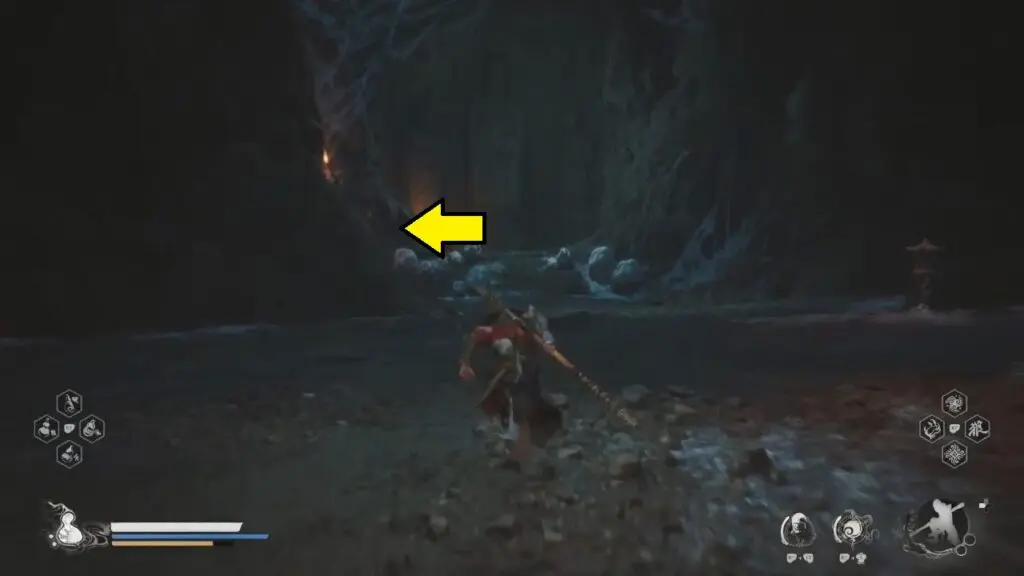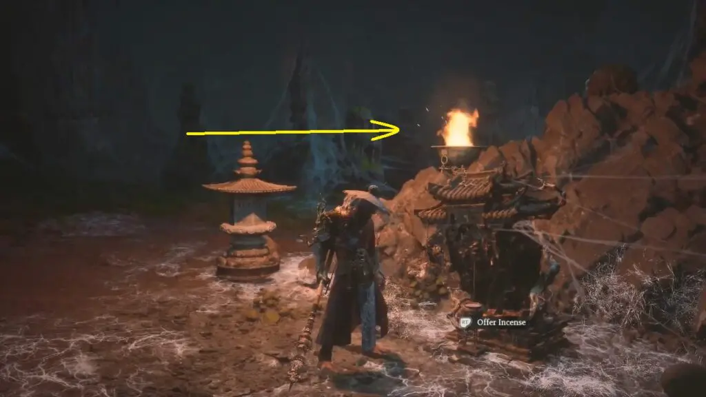 Travel to the ‘Relief of the Fallen Loong’ shrine located in Webbed Hollow. From there, proceed to the path behind the shrine and make your way through some spider webs.
