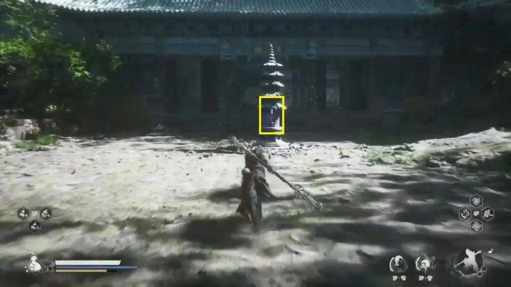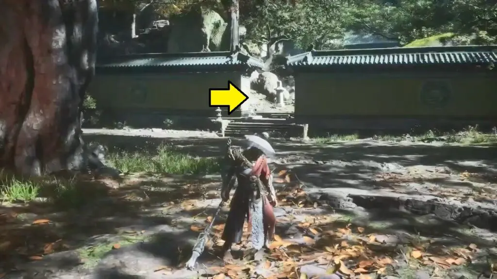 Travel to the ‘Court of Illumination’ shrine located in the ‘Temple of Yellow Flowers’. The shrine is in the middle of a courtyard. Exit the courtyard from the door where you see stairs going up.