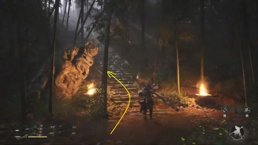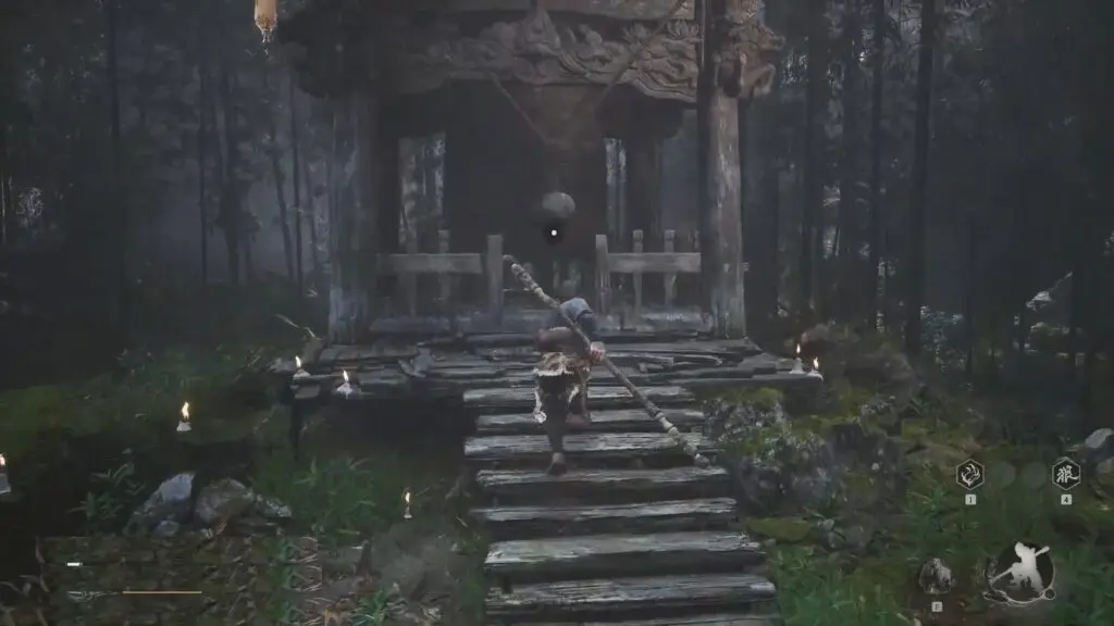 Then, go down the slope to reach a bamboo forest. Go past the enemies to find another boss named Guangmou. Once you beat him, you’ll find the second giant bell behind him.
