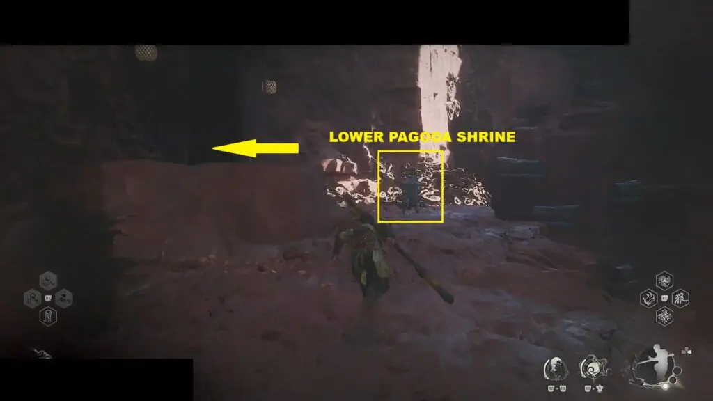 Travel to Lower Pagoda shrine. Go inside through the door near the shrine as shown in the picture below. Then turn right and continue ahead. Soon you will reach an opening in the wall as shown in the second picture below. Go out through the opening then go left.
