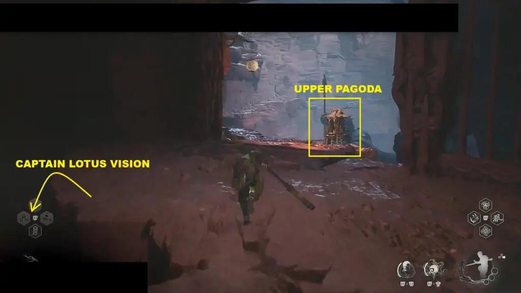 These purple magic gates will be unlocked after you defeat the Captain Lotus Vision optional boss as shown in the picture below. To reach Captain Lotus Vision, travel to the Upper Pagoda shrine. Go inside through the broken wall in front of the shrine and jump down through the broken floor ahead. There you will find Captain Lotus Vision boss. Defeat him to unlock the magic purple gates. If you don’t know how to reach the Upper Pagoda shrine, then continue reading the article.