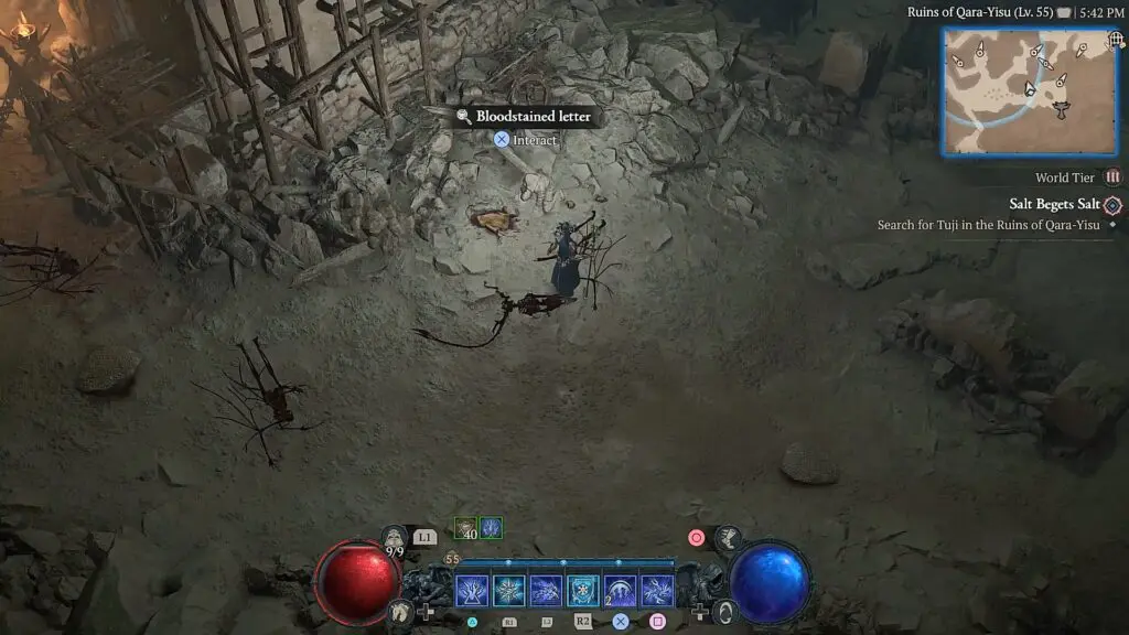 This guide shows the complete walkthrough of the Blood and Sweat side quest in the Diablo 4 game, released on 6th June 2023. You get the quest by reading the Bloodstained Letter in the Qara Yisu area in the Dry Steppes region as shown in the pictures below.