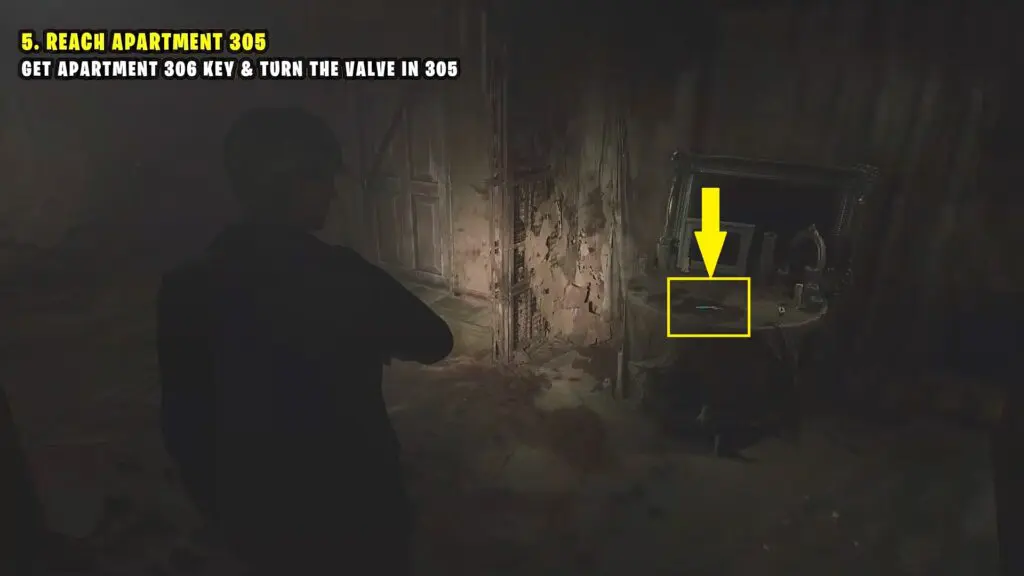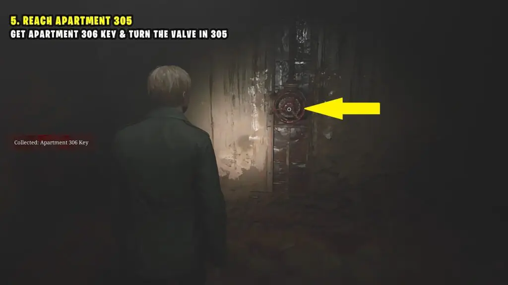 After turning Valve #1, defeat the enemies and go through the door next to the valve. Then proceed ahead to reach Room 306 as shown in the picture below. Use the key to open the door.