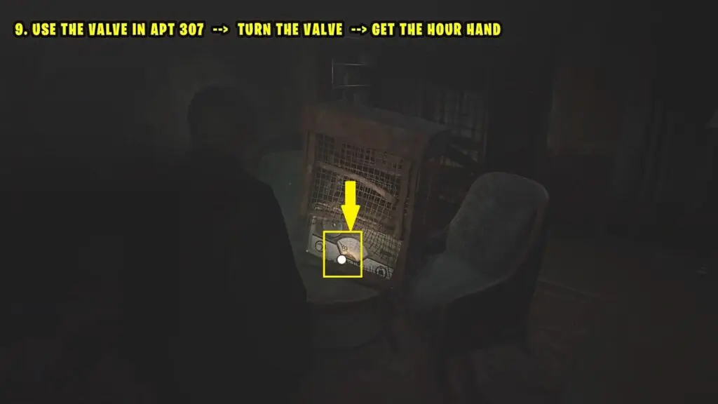 After entering the third floor, proceed ahead and reach Room 307. There you will find a hanging radio containing the Hour hand. You will have to solve the three valves puzzle to get the radio down to get the Hour hand.