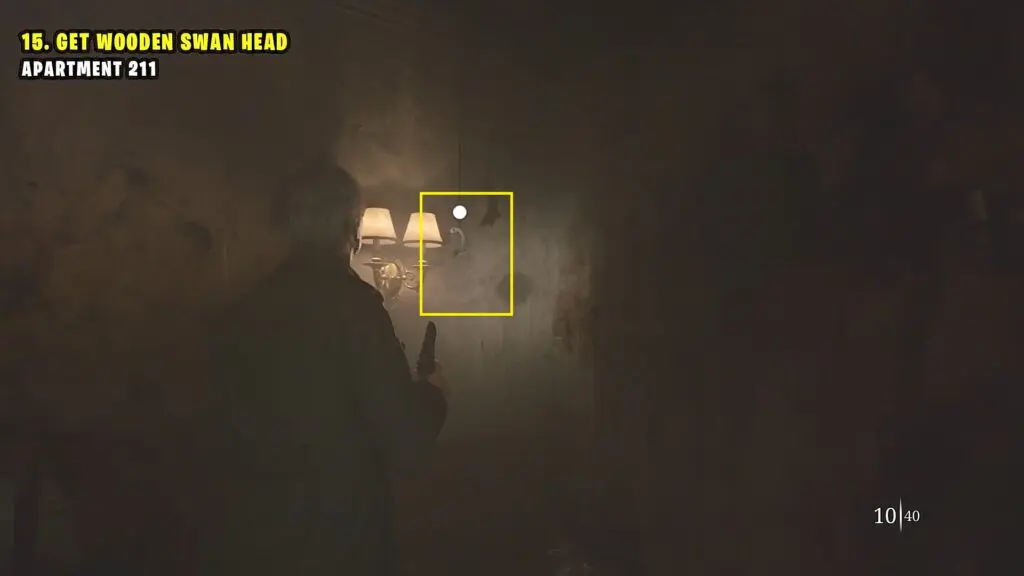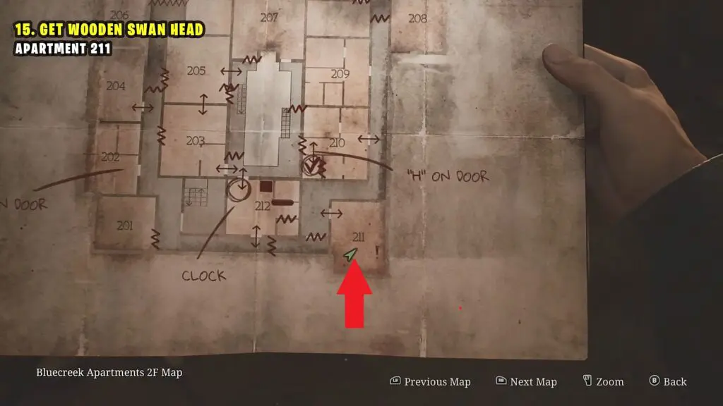 Make your way to the Room 211 and get the Wooden Swan Head from the location shown in the pictures below.