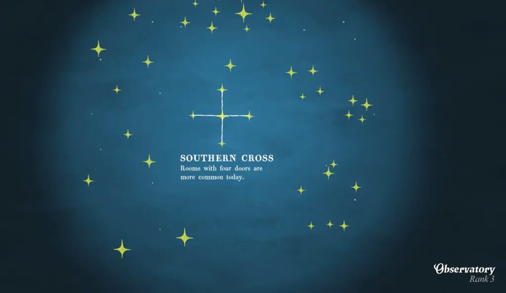Now, draft the Observatory room, and once you’re inside, use the giant telescope. Looking through it to activate the “Southern Cross” buff.