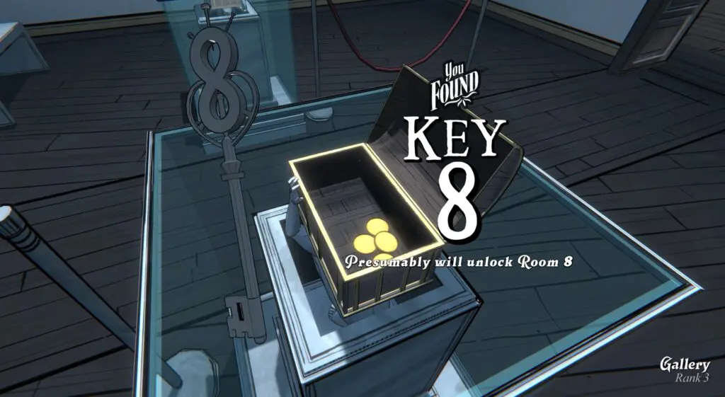 You can find Key 8 by solving the puzzle in the Gallery Room.