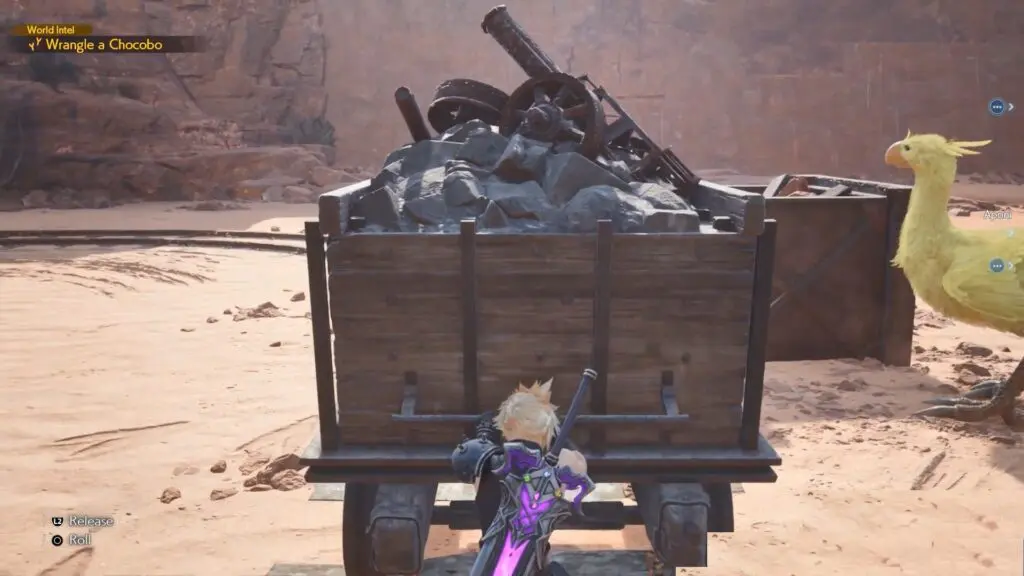 Push the cart ahead until its end part meets the upfront metal box on the left end. This will obstruct the Chocobo’s vision.