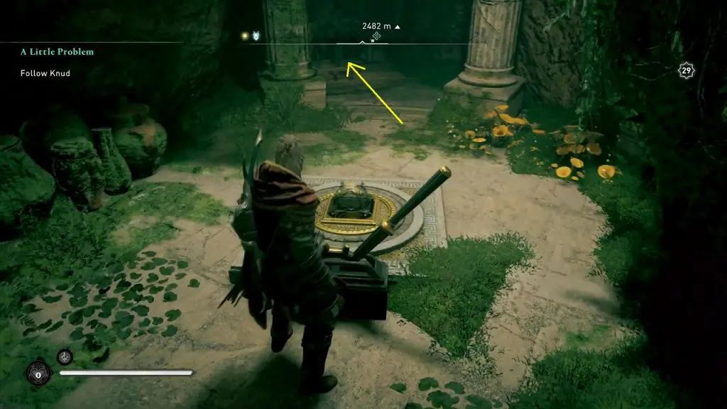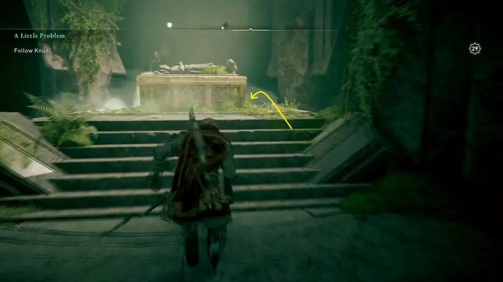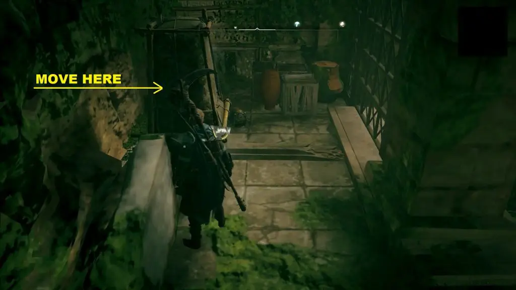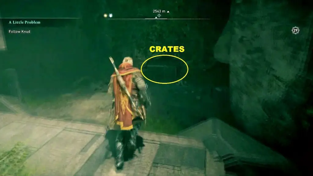 As you proceed ahead, you will come to a tomb grave. Near the tomb grave, you will find a couple of wooden crates in front of a hole in the wall as shown below. Break the crates and then slide through the hole. Go to the end of the path and collect the Artifact from the ground.