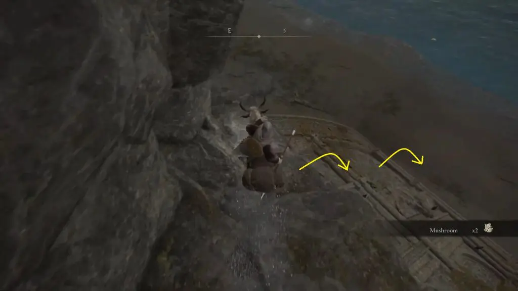 Jump down to the lower level from the edge of the cliff as shown in the picture below.