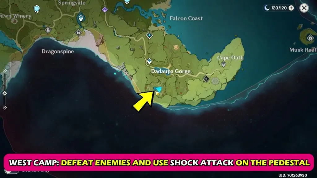 South: The Sleeper Tribe– The Sleeper tribe is at the location marked below. Defeat the enemies in the camp. Then hit the pillar at the center with an electro attack. This will break the electro seal.