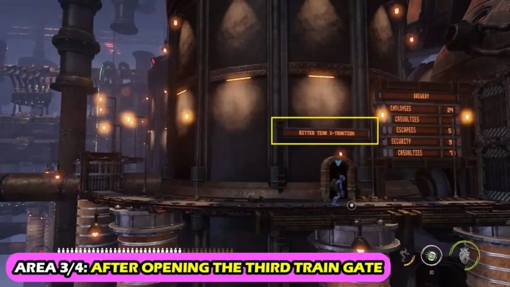 After you have open the third train gate, continue the journey to reach the gate with the board ‘BITTER TEAR X-TRAKTION’.