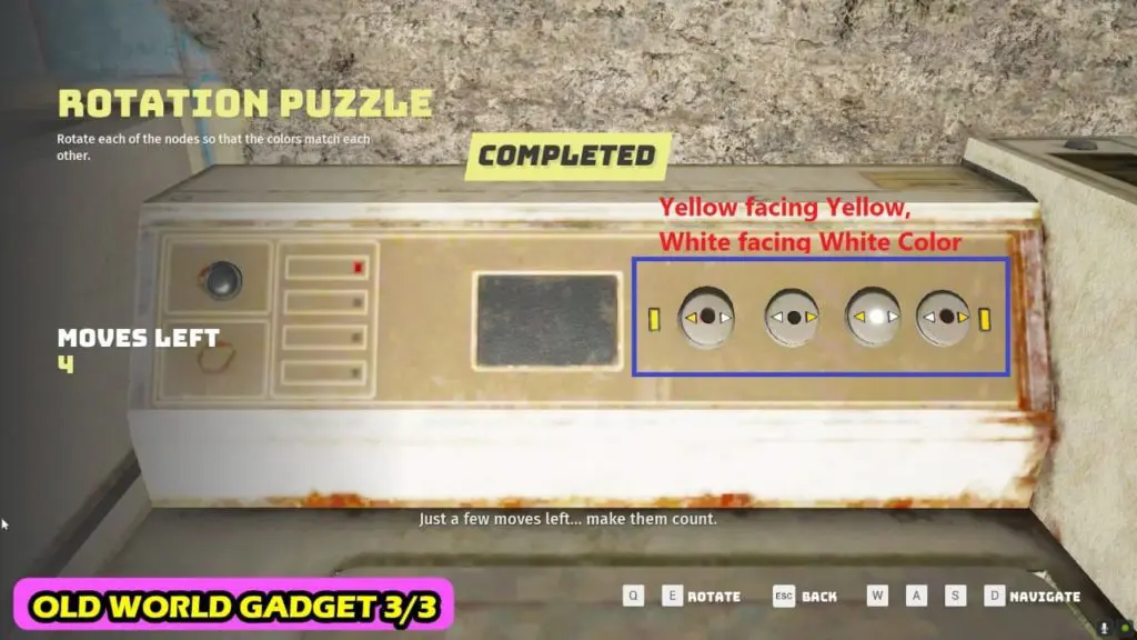 From the previous location head in the east (right) direction. At the end go down the stairs on the left. The laundromat is located adjacent to the stairs. You need to interact with one of the washing machines near the left wall. Rotate the nodes/dials so that the color match each other that is yellow color should face each other and white color should face each other.