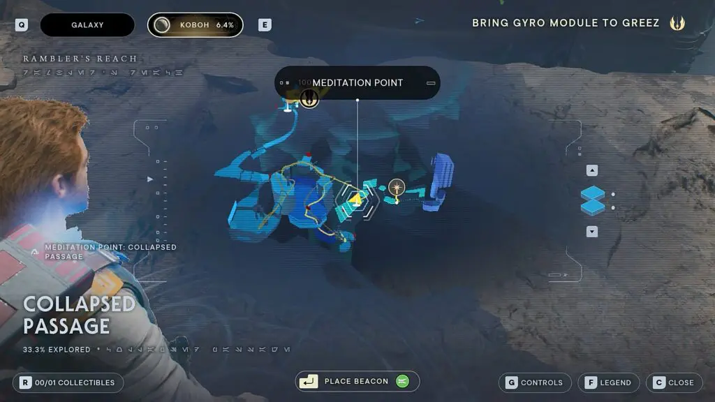 This guide shows how to complete the Bring Gyro Module to Greez objective in Star Wars Jedi: Survivor game, which released on 28th April 2023. The objective starts in Collapsed Passage at the location shown below.