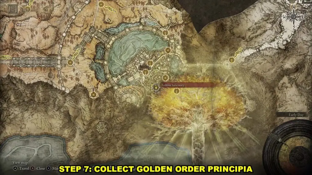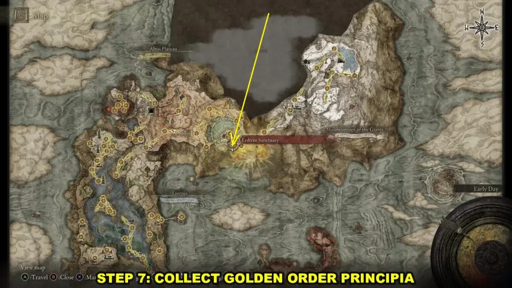 Now you have to collect Golden Order Principia. I will show the path from Erdtree Sanctuary as shown in the picture below.