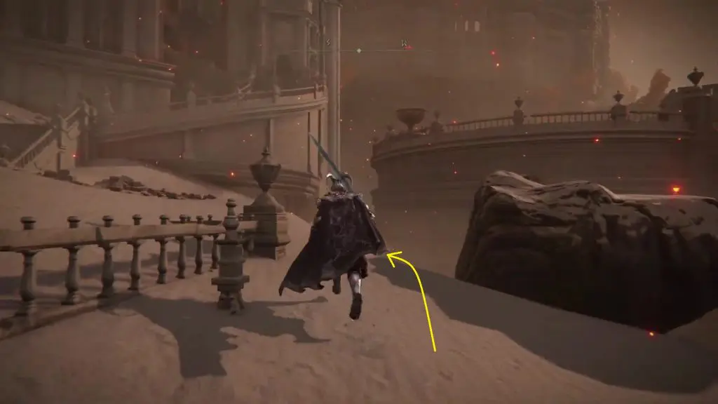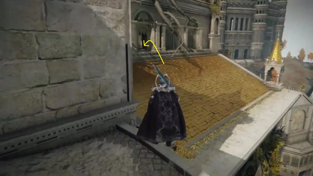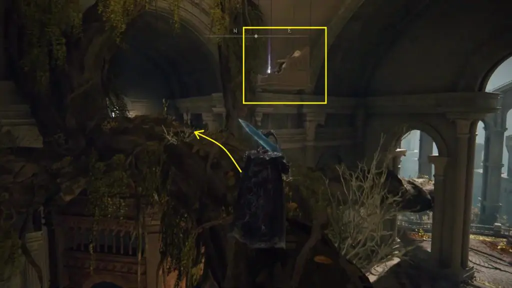 From Erdtree Sanctuary Site of Grace, climb up the tree root on the east side as shown below.
