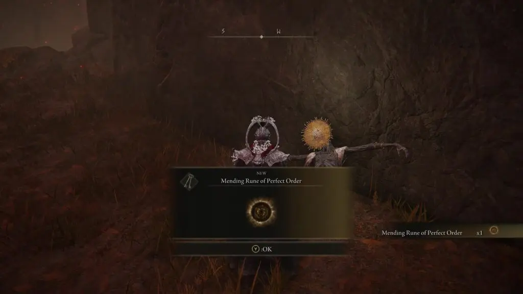 Pick up the Mending Rune of Perfect Order from Goldmask’s body.