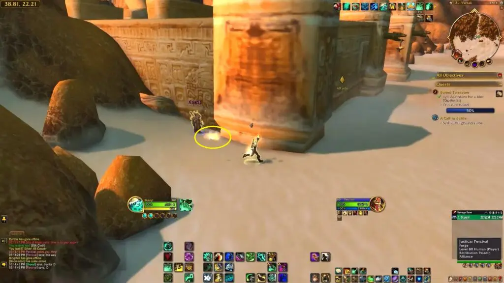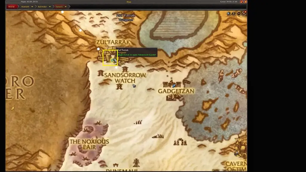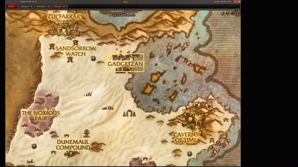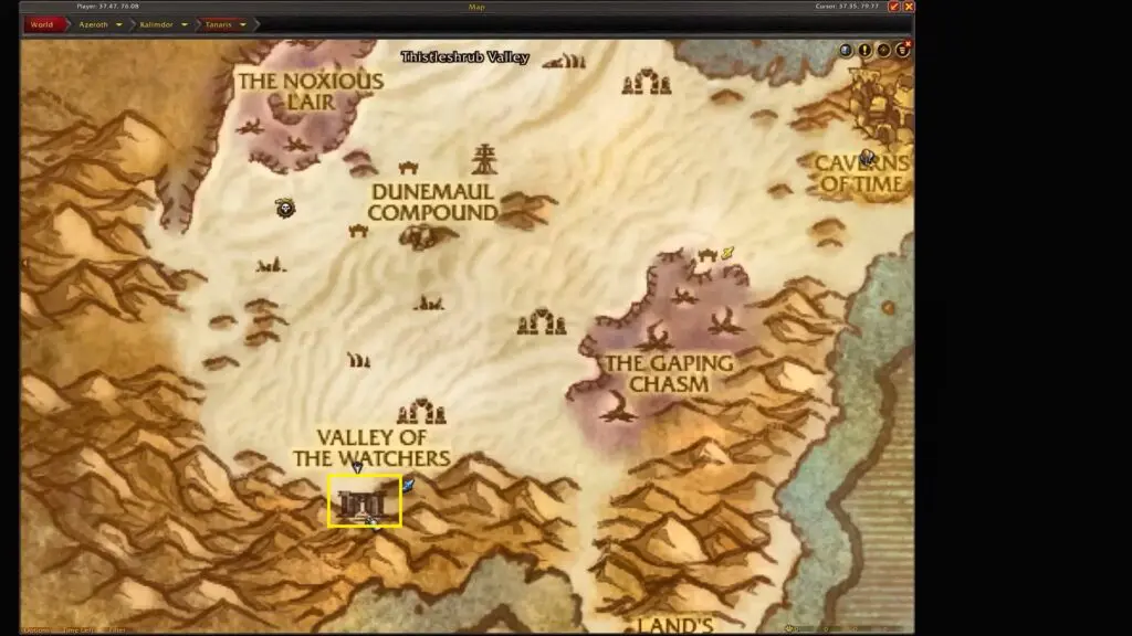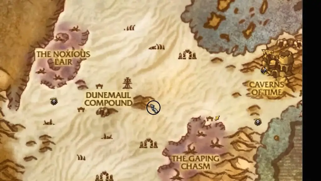 Next, fly to the Zul’Farrak area and head to the left side of Zul’Farrak’s Duengon. You’ll find another Ancient Treasure Note just to the dungeon’s left side.