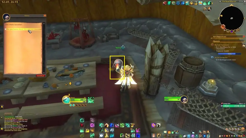 Finally, head to the Gadgetzan area. Enter the building and speak with Yenu, the NPC innkeeper, to inquire about the Ancient Treasure.
