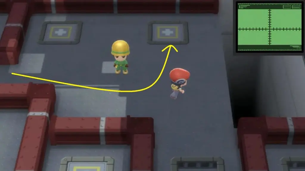 Finally, on the 1st floor, head west and take the platform with the red symbol. It will take you to the location of Gym Leader Byron.