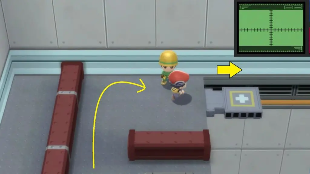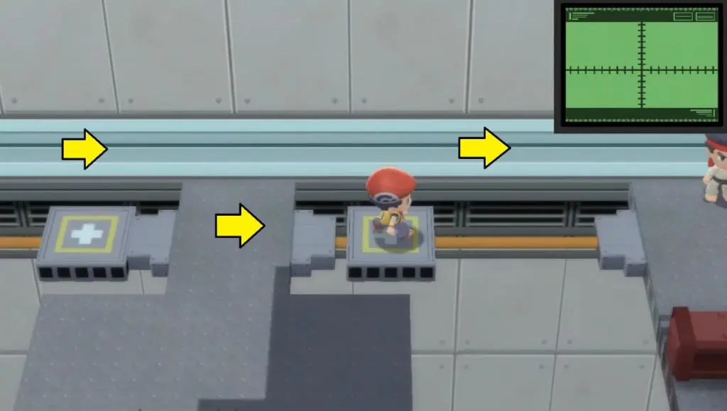 - Use the platform on the north to get across. Keep moving north until you reach the trainer with a yellow cap at the end.