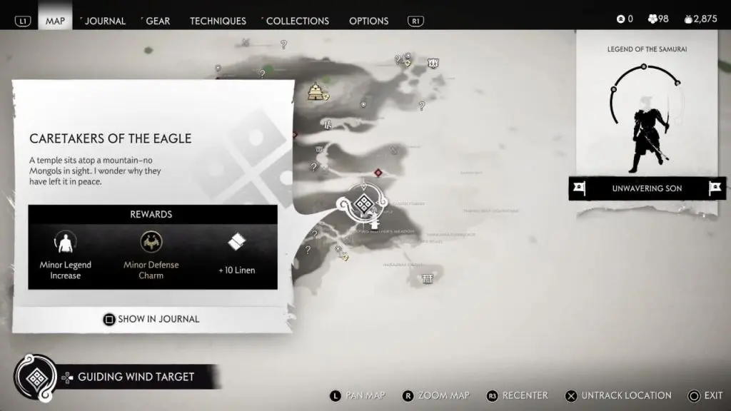 This walkthrough will guide you through all objectives of the Caretakers of the Eagle side tales. There are a total of seven side tales in Ghost of Tsushima – Iki Island. Caretakers of the Eagle is a side tale in Ghost of Tsushima – Iki Island DLC Expansion where your goal is to rescue the kidnapped villagers and clear the temple from all Eagles and Mongols.