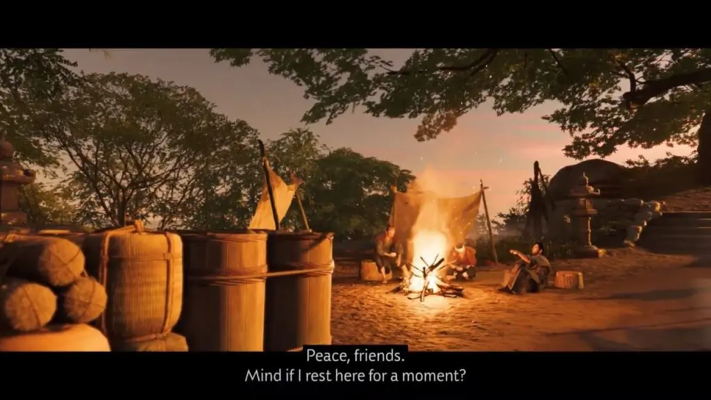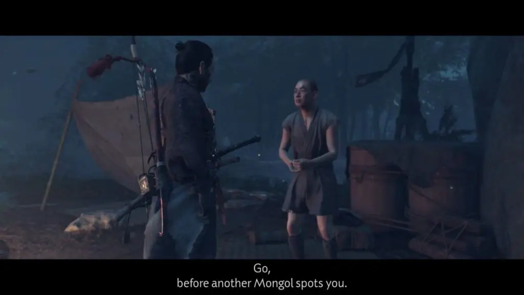 Return to the same house where you heard about the peasants’ escape plan. Crawl through the floorboards by sliding under the holes around the house. Once inside, speak with the captives and release them. The Mongols will arrive, and enemies will spawn all over the temple grounds.