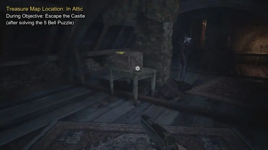 - You can obtain the treasure map from Attic after solving the 5 Bells Puzzle.
