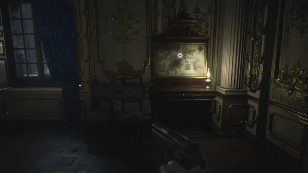 After she leaves the room head inside and grabs Dimitrescu’s Key from the wall. Use the key on the main door, only to get caught again.