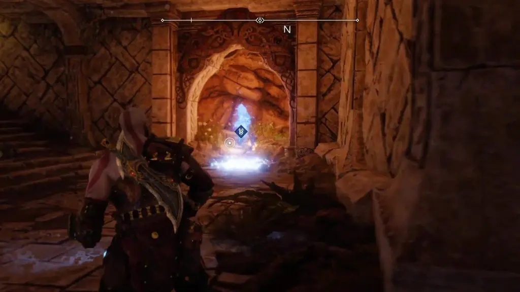 Go straight ahead and open the gate. Use your spear to destroy the rocks on the right side of the hallway as shown in the picture below.