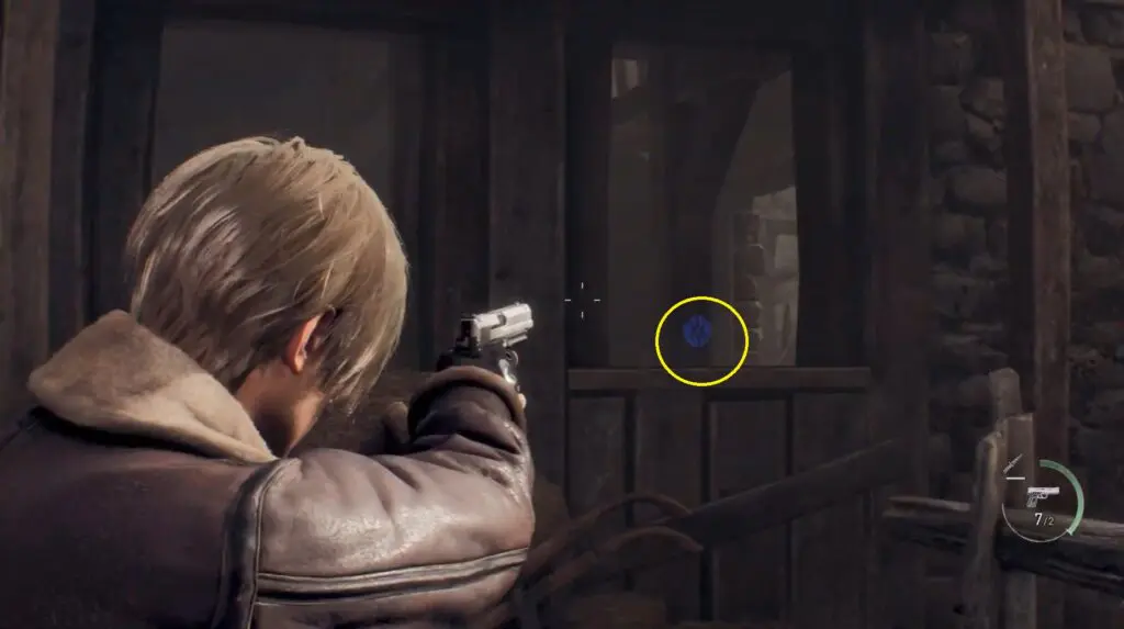 This collectible is available at the end of the Farm area. Prior to the closed gate, there is a blue leaflet attached to the wall which you can retrieve. To fulfill this request, you will need to shoot the 5 Blue Medallions located in the farm area.