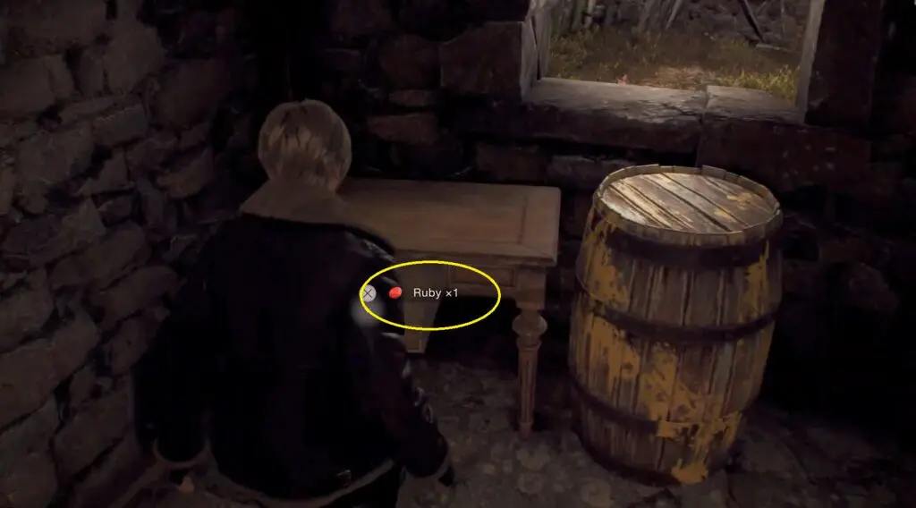 After picking up the Flagon, shoot the lock on the door to enter the barn. You will find a Ruby on the corner desk.