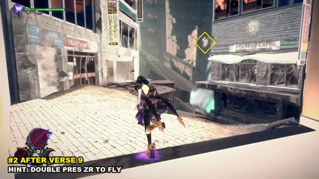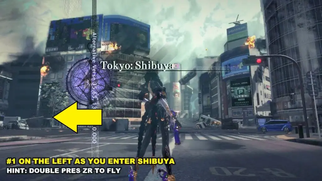 The first Umbran can be located at the start of the Shibuya section. As you enter Shibuya, turn left to locate Kitty hidden at the base of a building. It’s difficult to catch the cat. Press ZR twice to fly and chase the cat right as it’s entering a corner.
