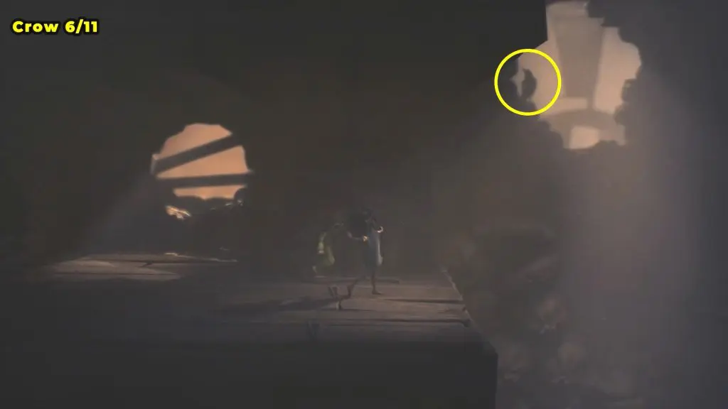As you move forward in the chapter, you’ll see some wooden boards blocking your way. Pull them off to go inside. Once you’re in, you’ll need to shoot down a raven holding a key (Part of the story). Look around the same room, and you’ll spot two more crows sitting up in the top-right corner.