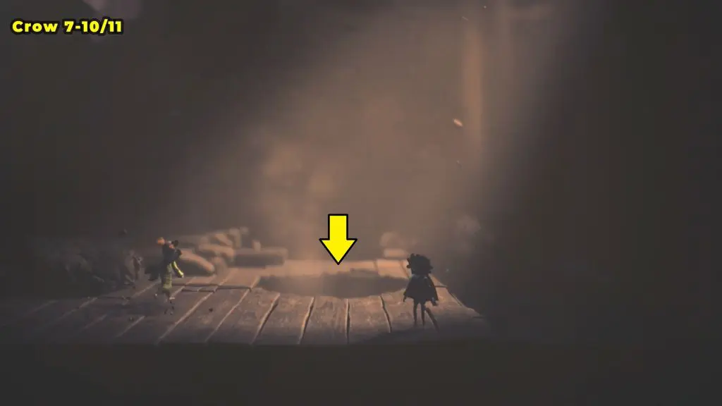 After the baby pulls the toy out of the ground, a hole will appear that you can jump into. Drop down and follow the path until you reach an open area filled with statues. In this section, you’ll find four crows gathered in one spot.