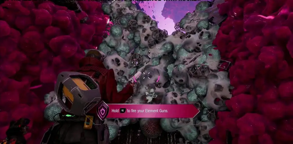As you proceed after collecting the previous collectible, you will drop down a hole and Rocket will tell you to proceed without him. As you proceed, you will see some goo as shown in the second picture below. Destroy the goo to uncover the Guardian Collectible underneath it.